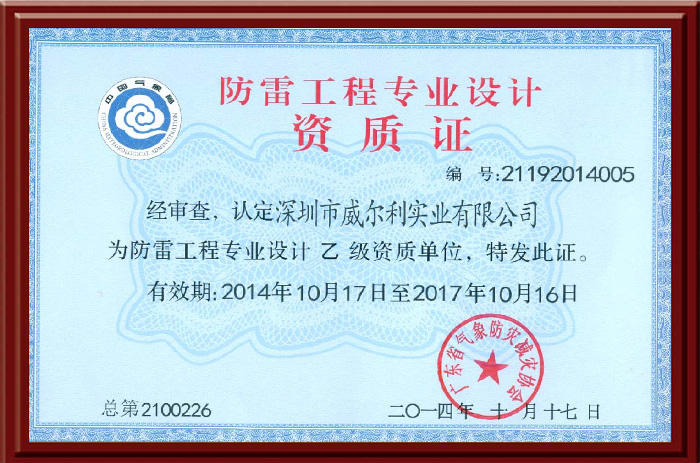 防雷工程设计资质证书